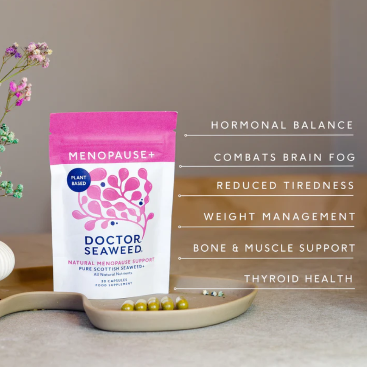 Struggling to focus? This helpful blend works to support hormone balance and combat some of the symptoms associated with declining oestrogen levels through phytoestrogens and plant-based B-vitamins.