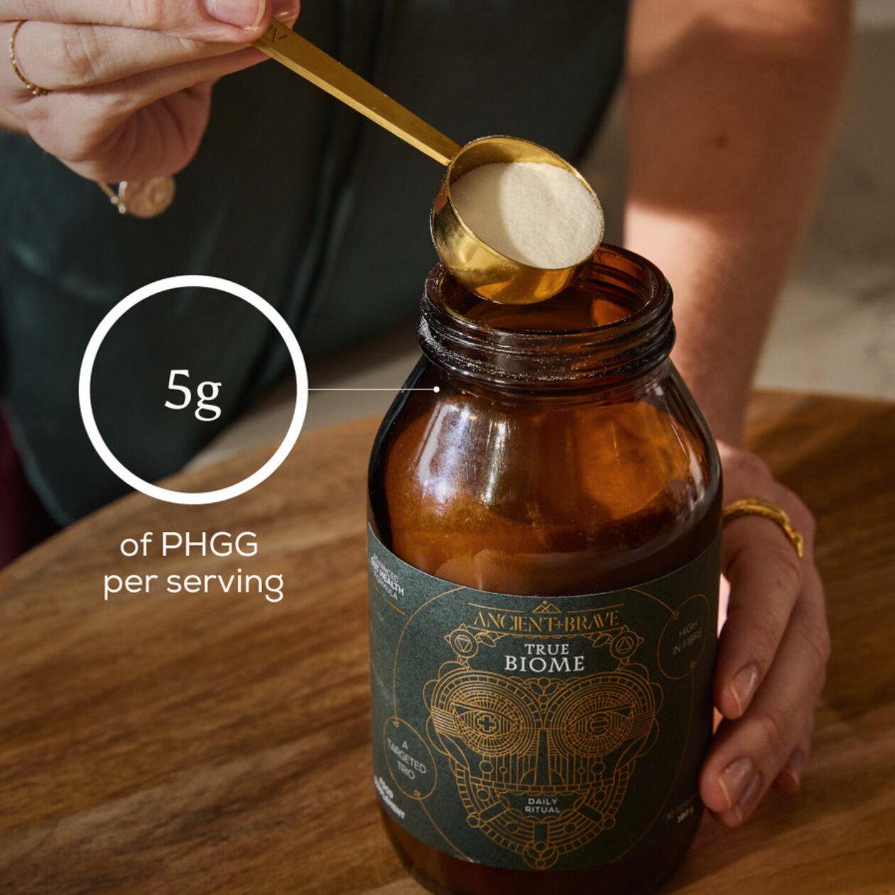 Mix 6g (one scoop) into 250 ml of hot or cold drink daily (start with 3g if sensitive).
