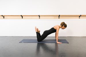 • Come into a plank position with your knees on the floor, make sure your shoulders stay above your wrists.